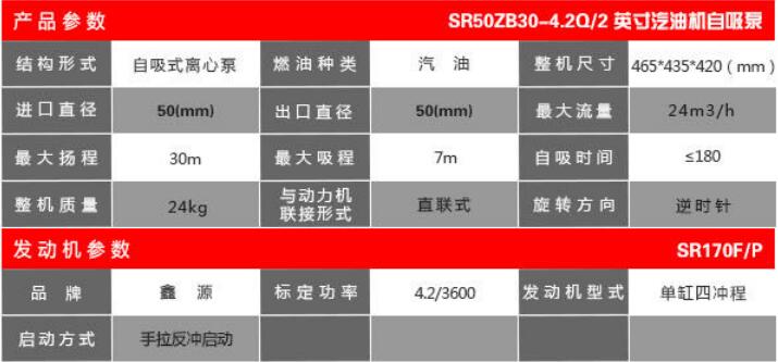 簡介—— 汽油機自吸泵SR50ZB30-4.2Q/SR80ZB25-4.2Q 優勢: 1.動力強勁:采用汽油機發動機,動力輸出強勁